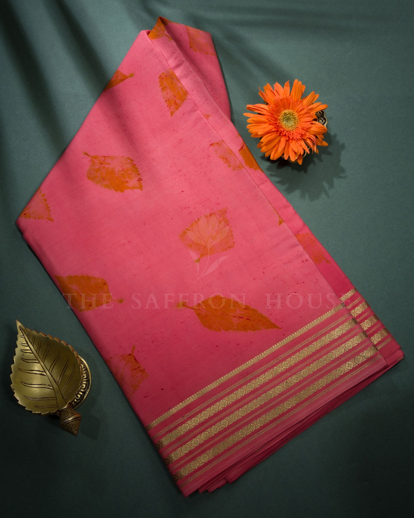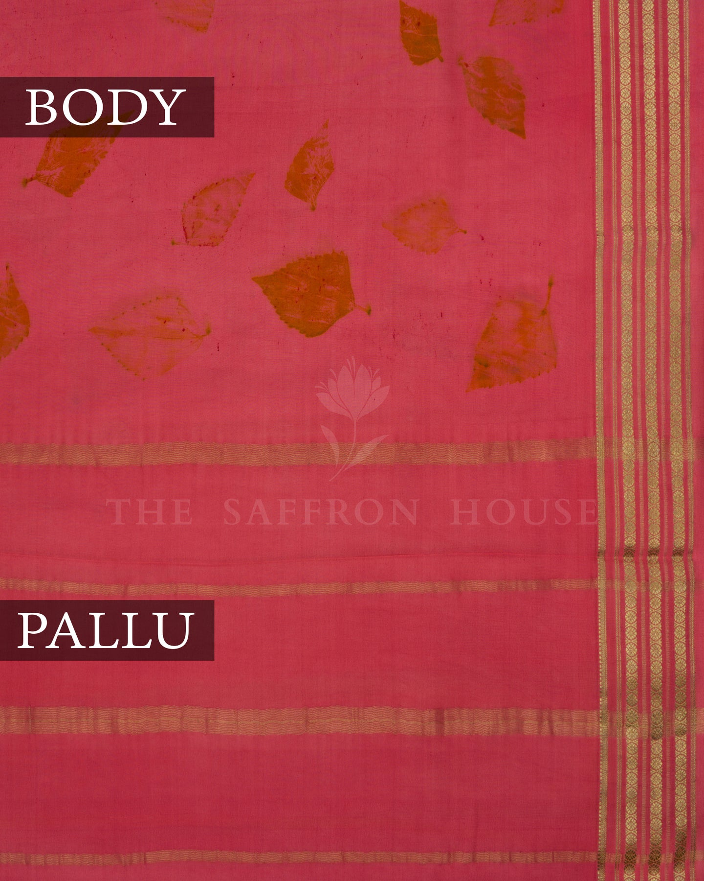Coral Pink Eco-Printed Mysore Silk Saree - TSH2506095