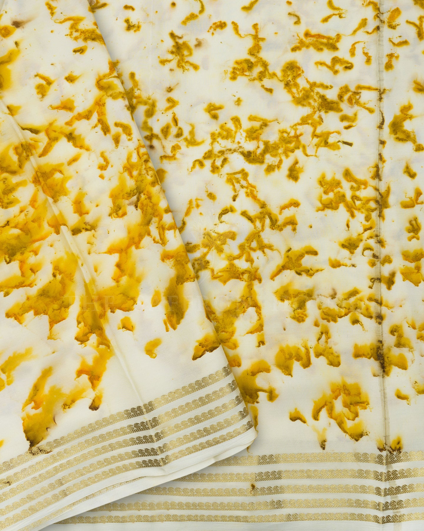 Cream Eco-Printed Mysore Silk Saree - TSH2506096