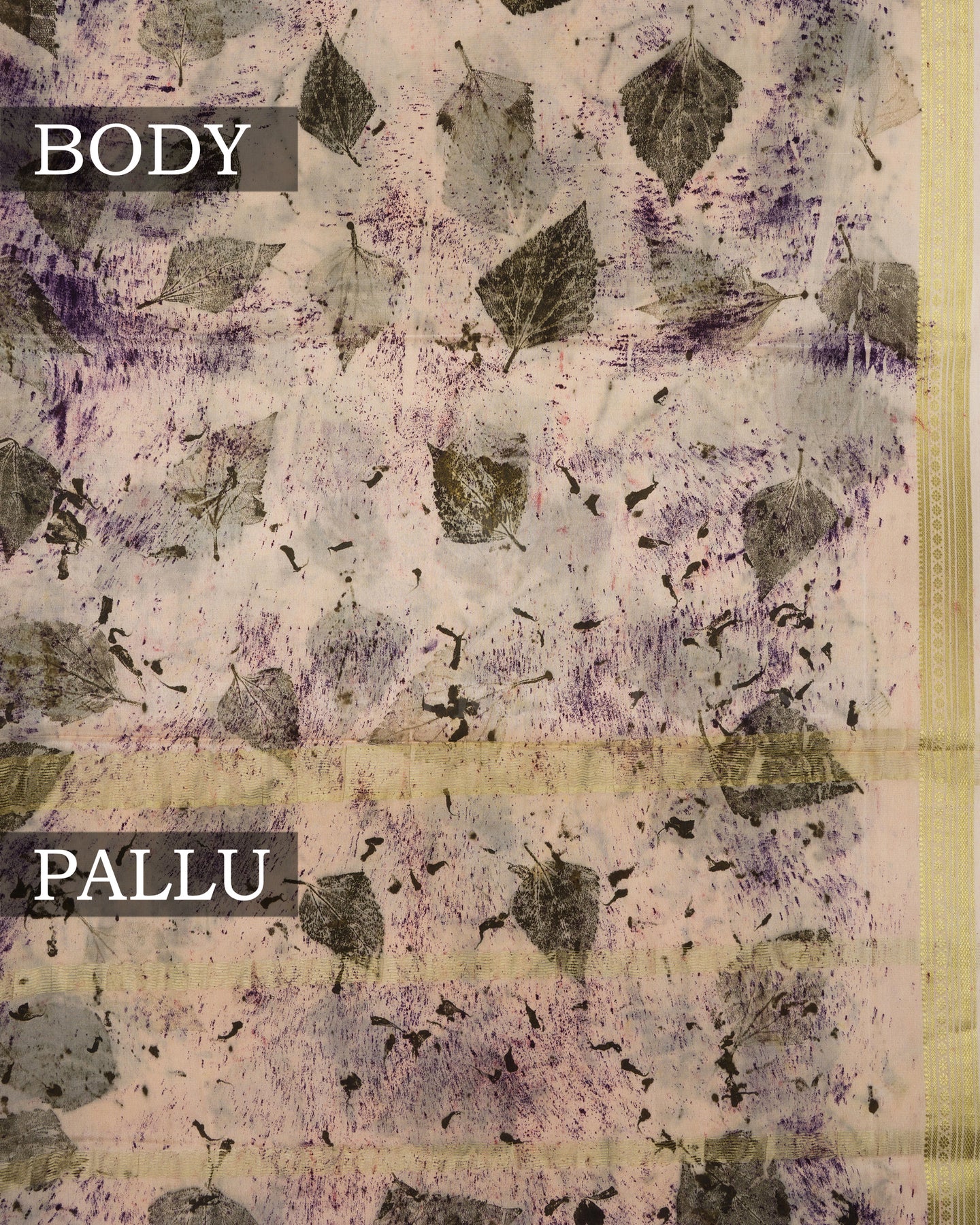 Pallu Details : Zari stripes with eco prints