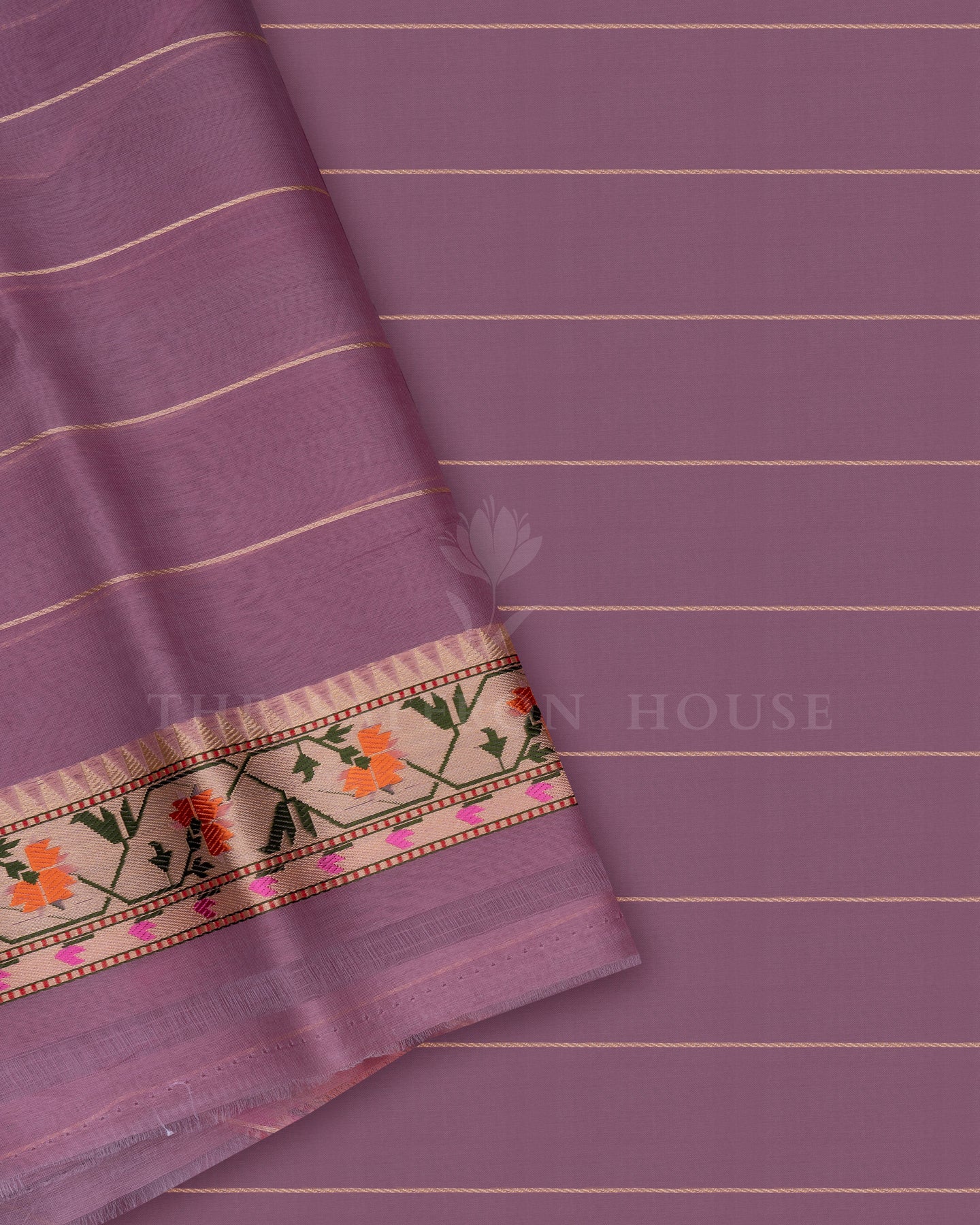 Blouse color & Pattern : Light lavender small stripes with paithani border