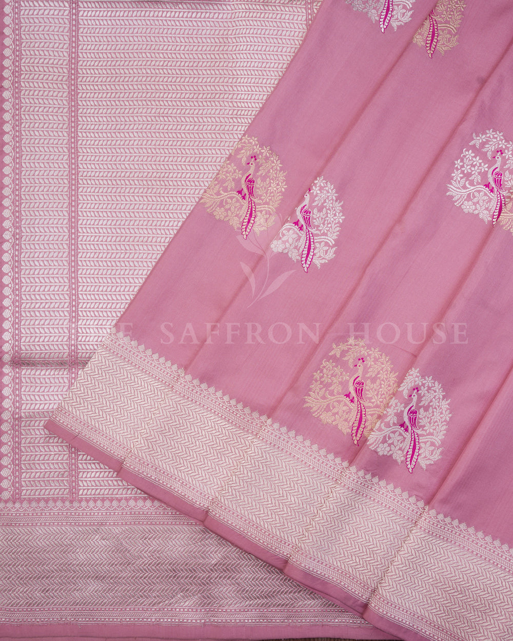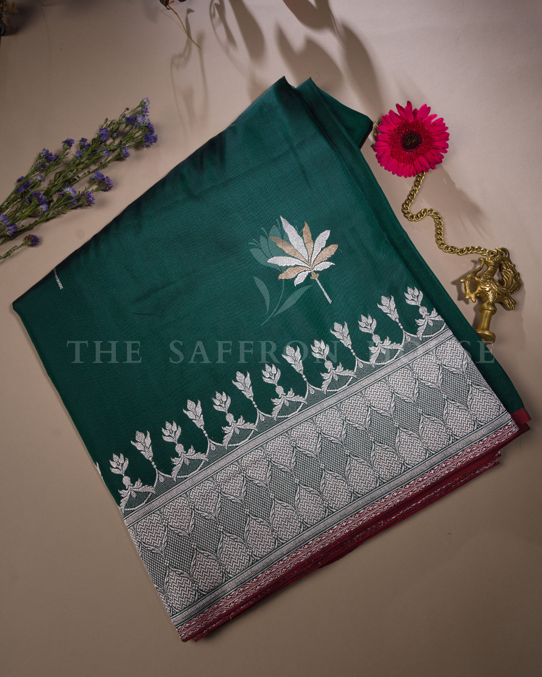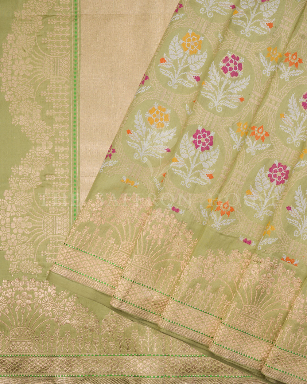 These fine Katan silk Banarasi sarees are known for their texture, durability, and structured drape. They are cherished for weddings, rituals, and special moments that deserve something lasting. The silk is soft yet strong, with a tight and shiny weave. Each drape reflects heritage, craft, and artistry.