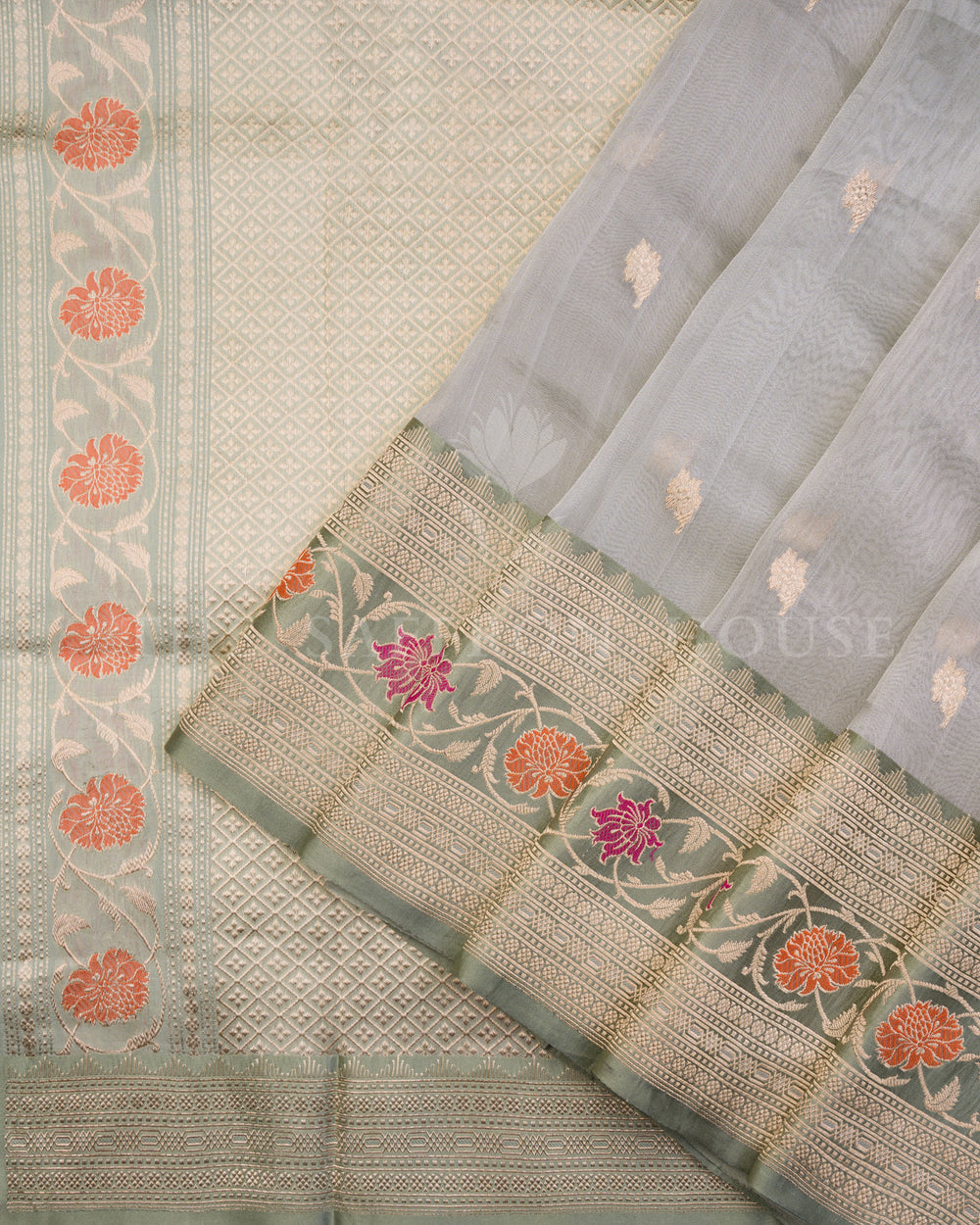 Shop Banarasi Kora silk sarees collection at The Saffron House.
