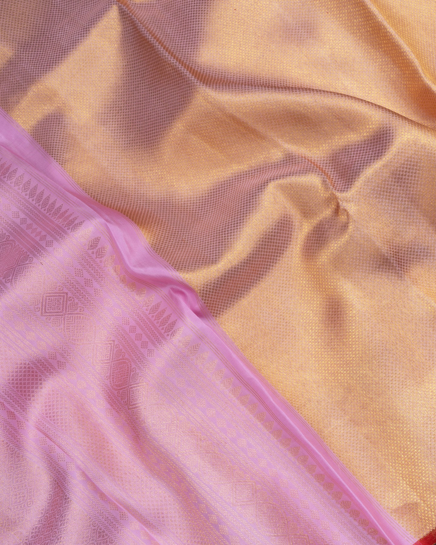 Rose Gold And Baby Pink Handwoven Kanjivaram Silk Saree - TSH2506127