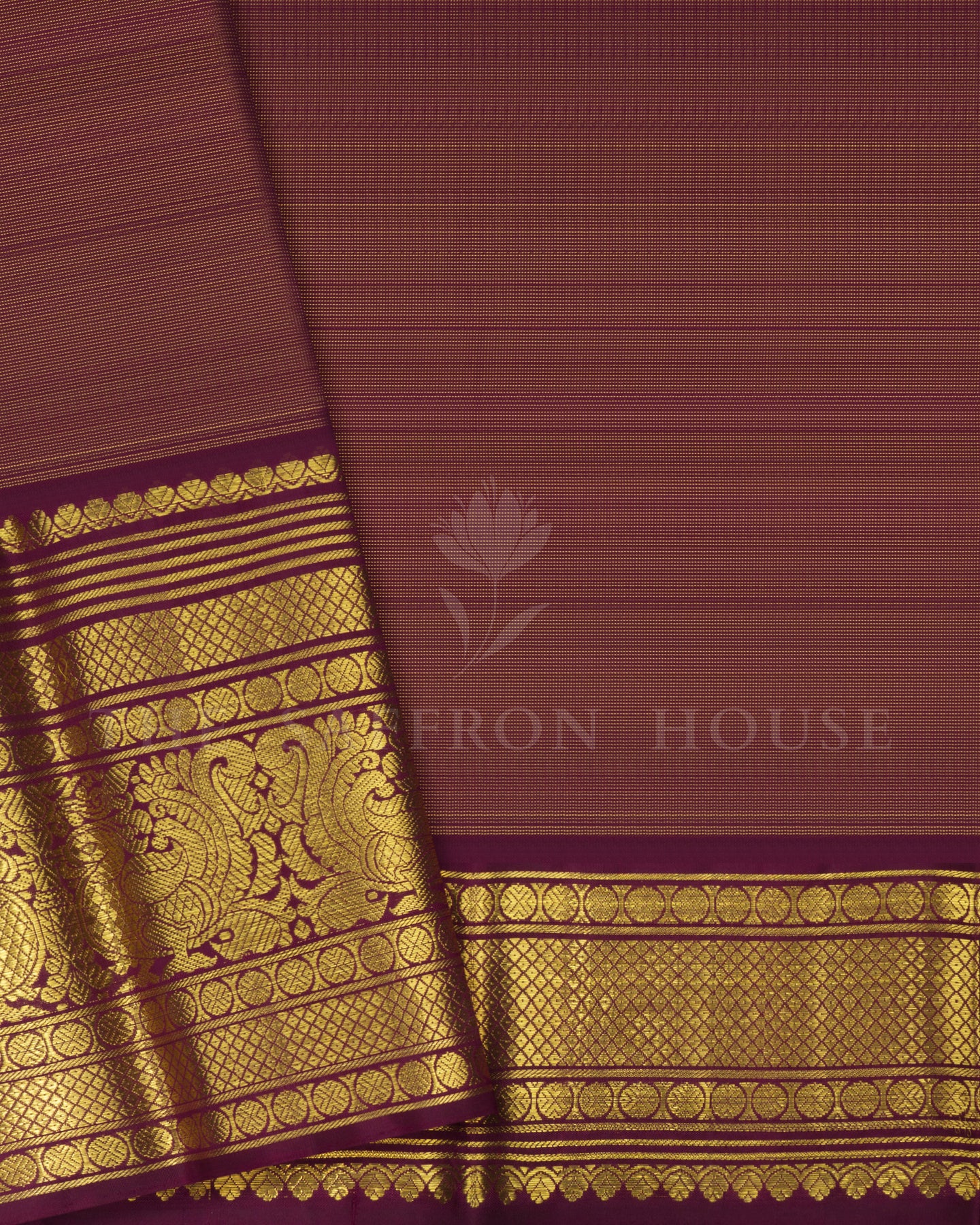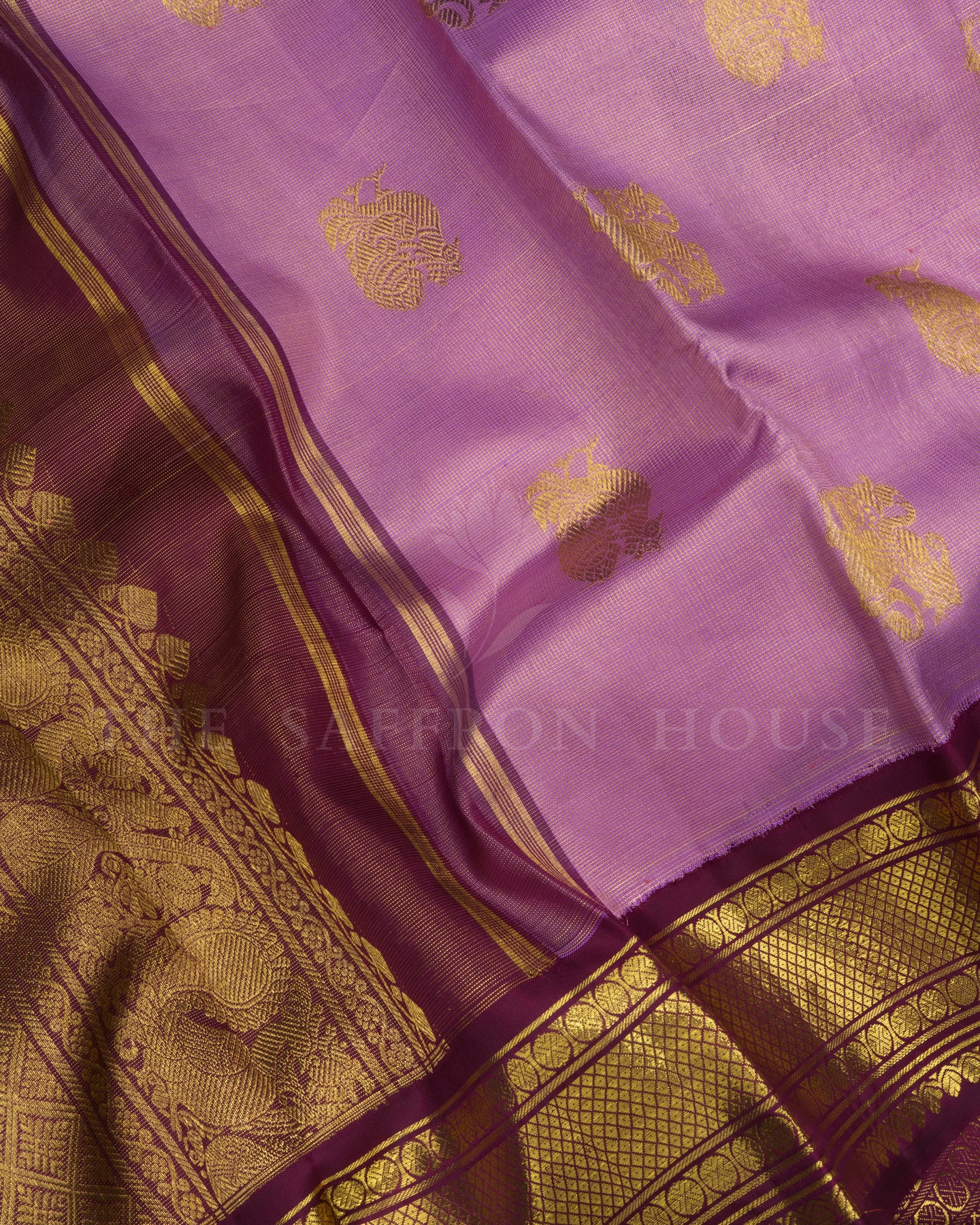 Lilac And Chocolate Brown Handwoven Kanjivaram Silk Saree - TSH2506067