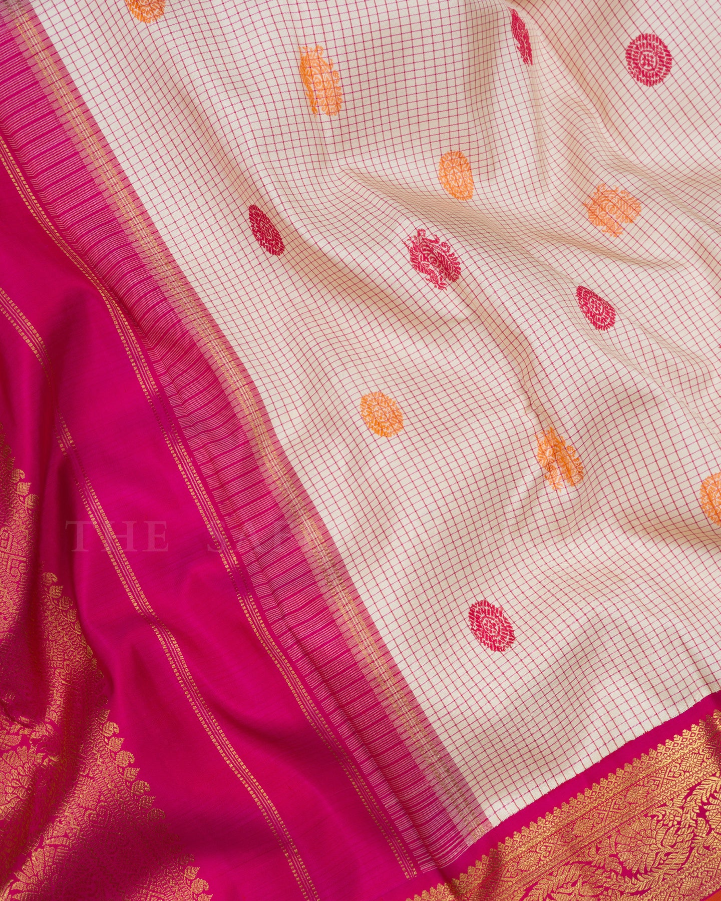 Body Motifs / Pattern : Peacock & Rudrakshi With Small Checks