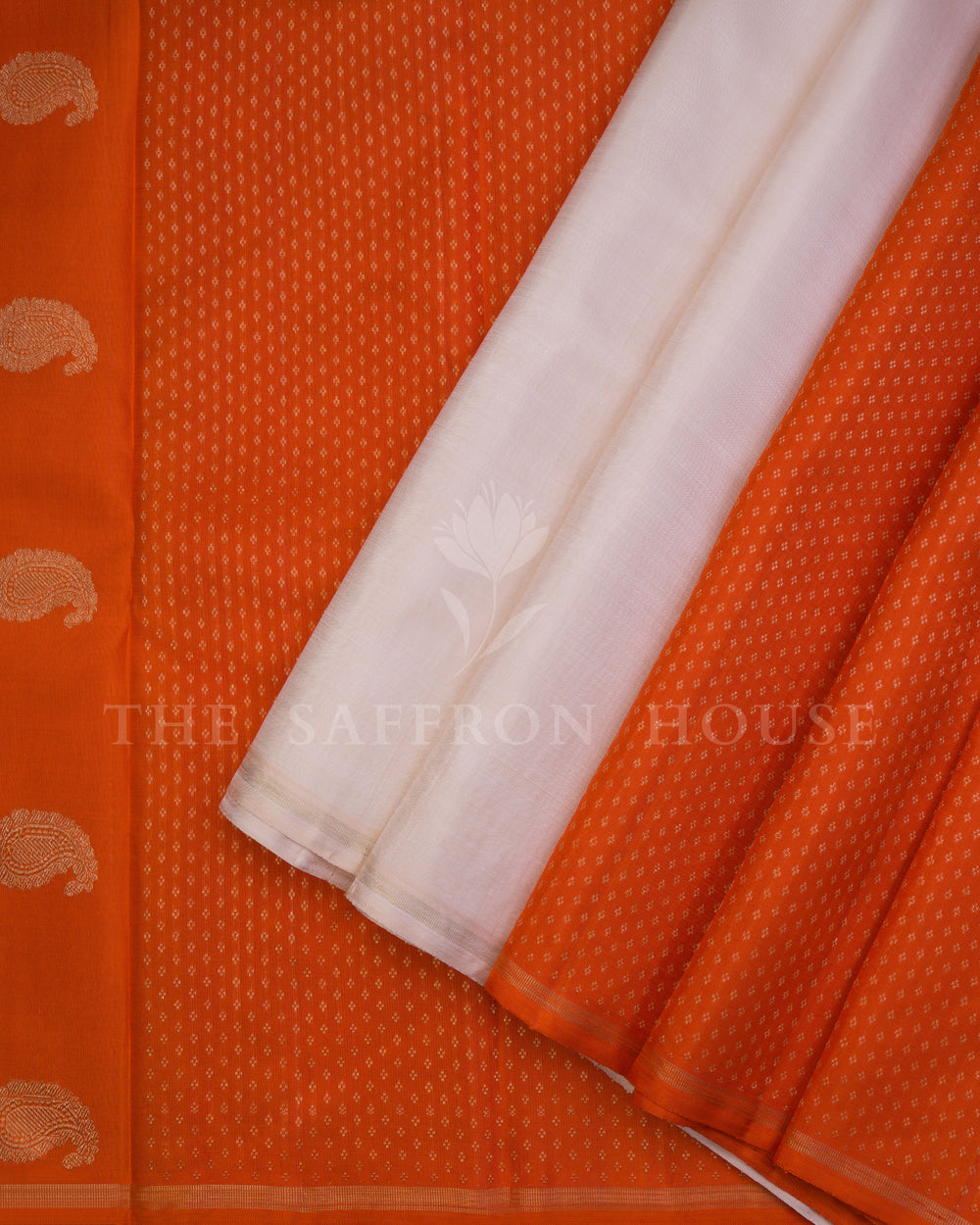 Minimal in structure, monumental in impact - No Border Kanjivaram Silk Sarees are a celebration of pure form and fluid grace. Woven in Kanchipuram using pure mulberry silk and pure zari, these sarees do away with the traditional korvai border, allowing the body of the weave to flow uninterrupted.