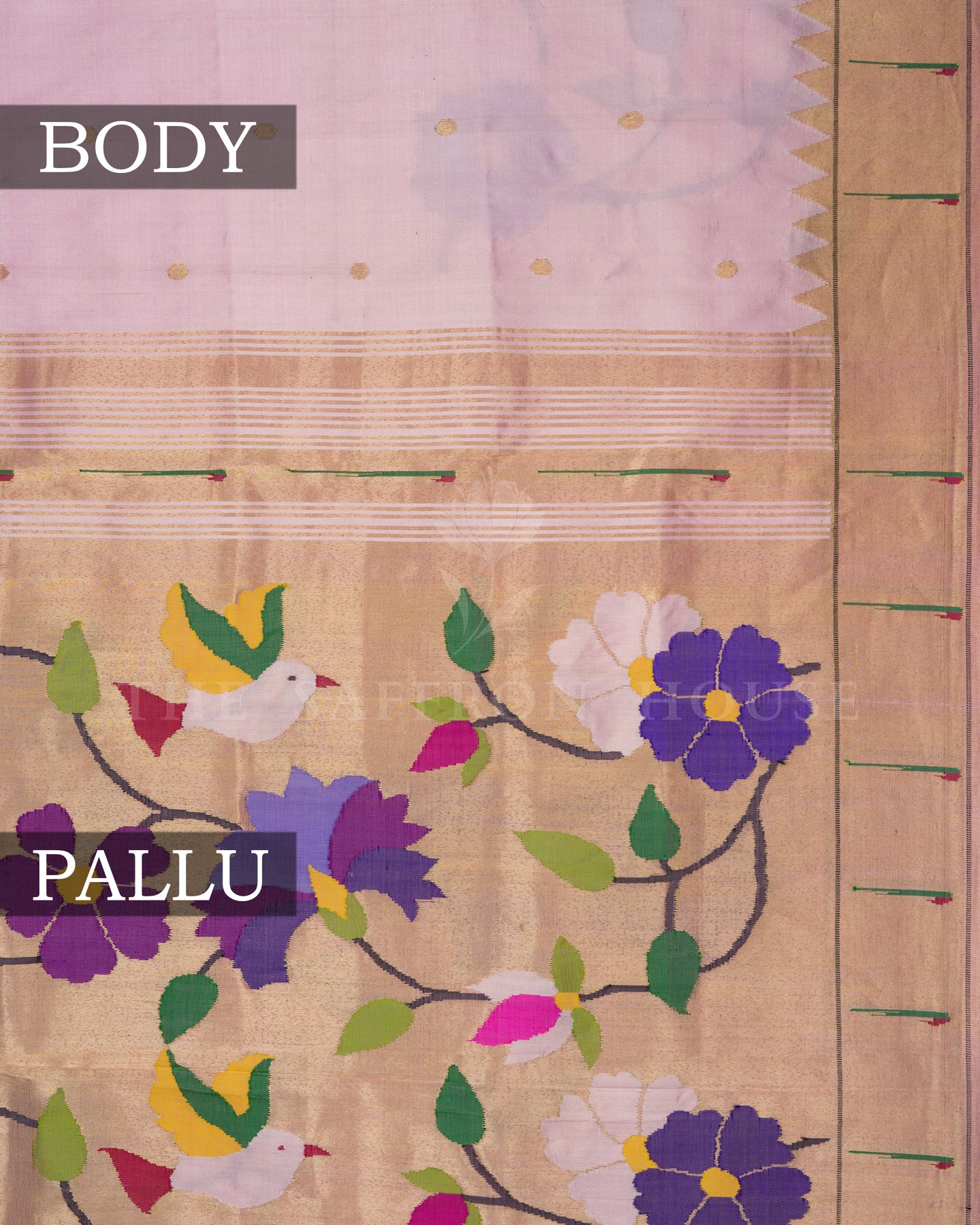 Border Motif/Pattern: Gold Brocade With Minakari Paithani