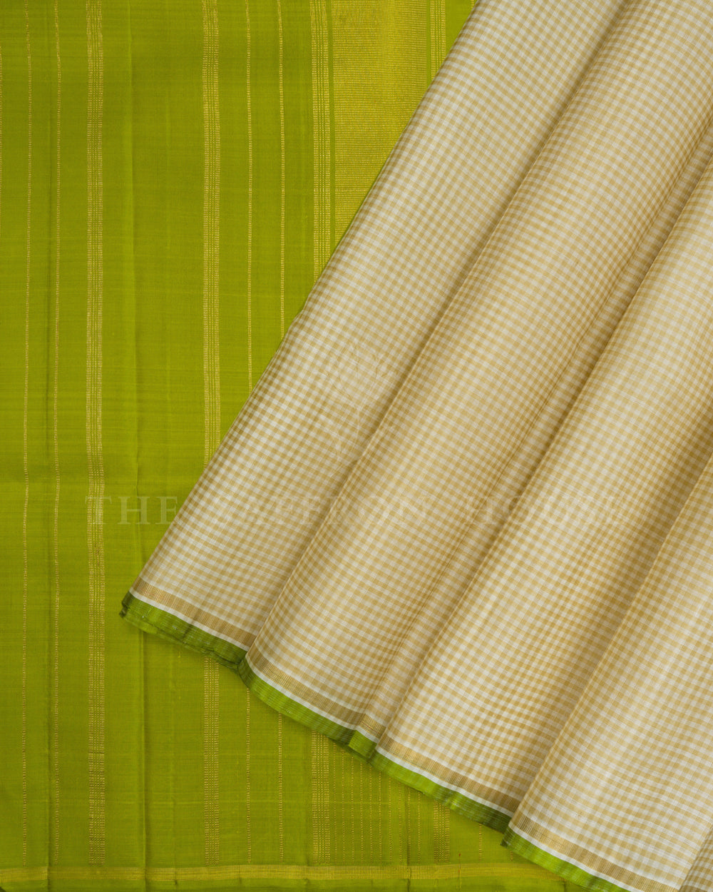 Bold grids, subtle lines, and sacred symmetry define each saree. Each piece serves as a canvas where tradition meets rhythm, echoing temple floors, ritual cloths, and the orderly beauty of heritage. The contrast between border and body, check and stripe, silence and shine reveals a quiet strength and structured grace.