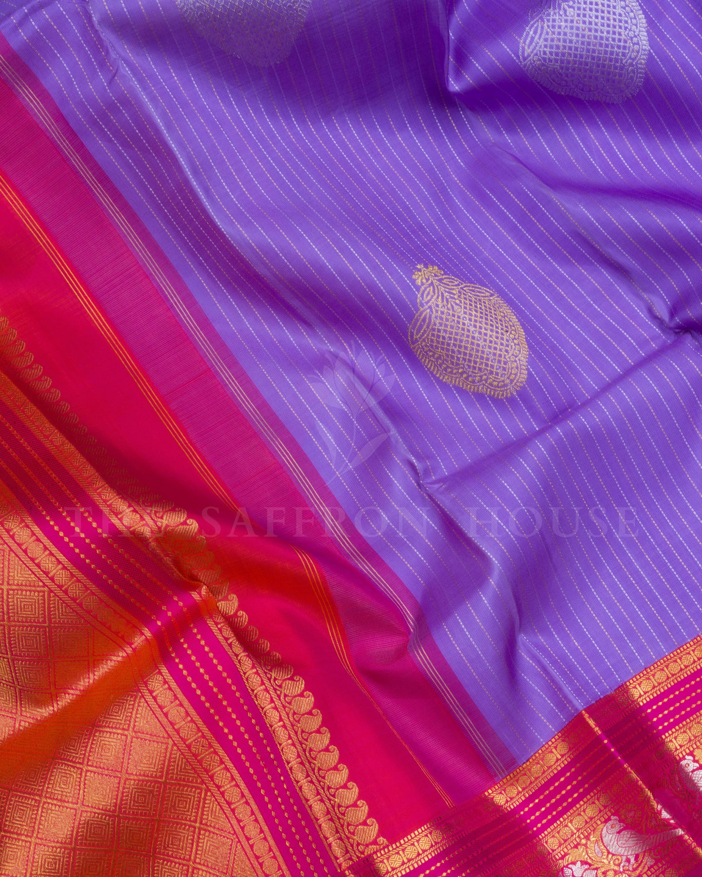 Lavender And Magenta Pink Handwoven Kanjivaram Silk Saree - TSH2506125
