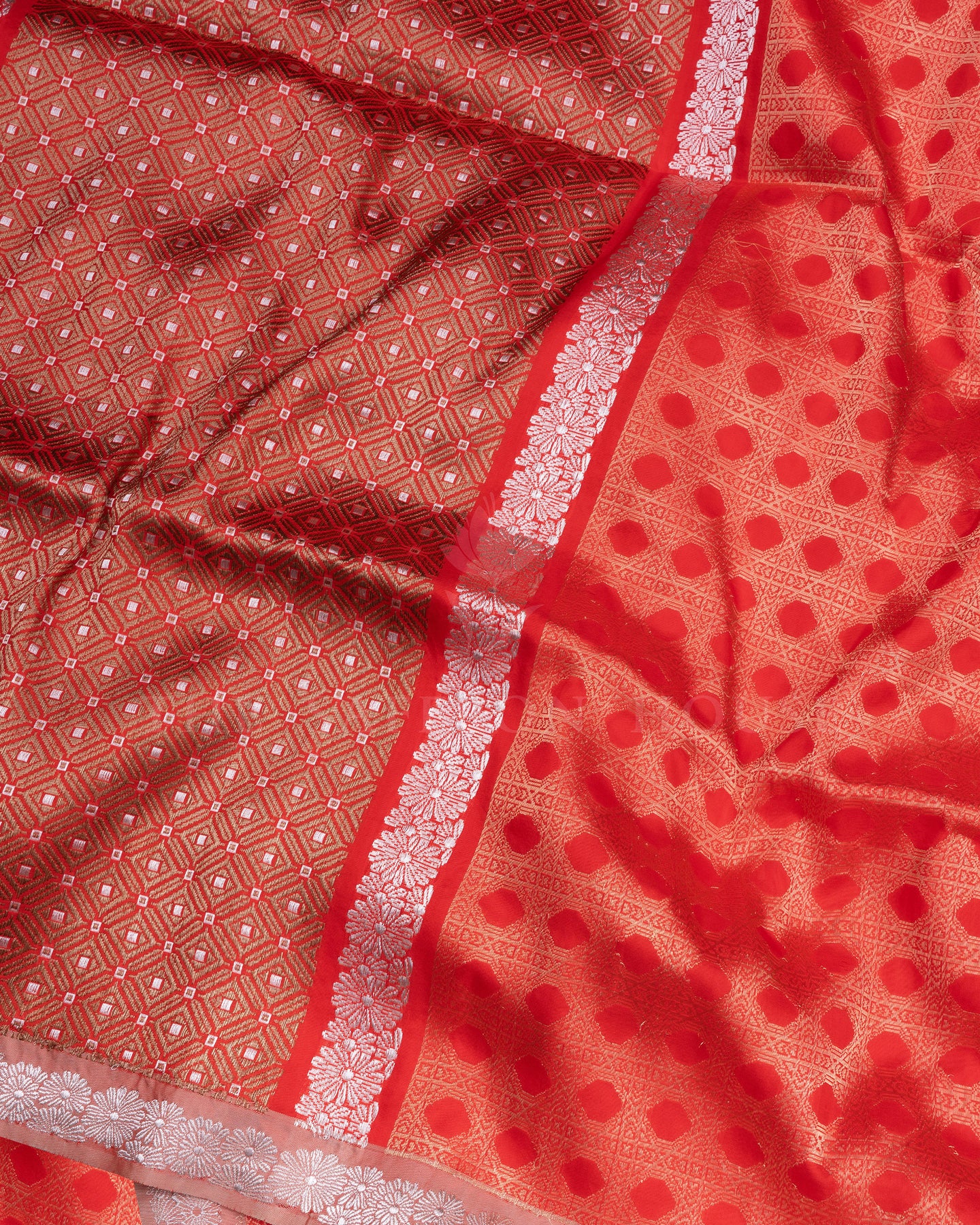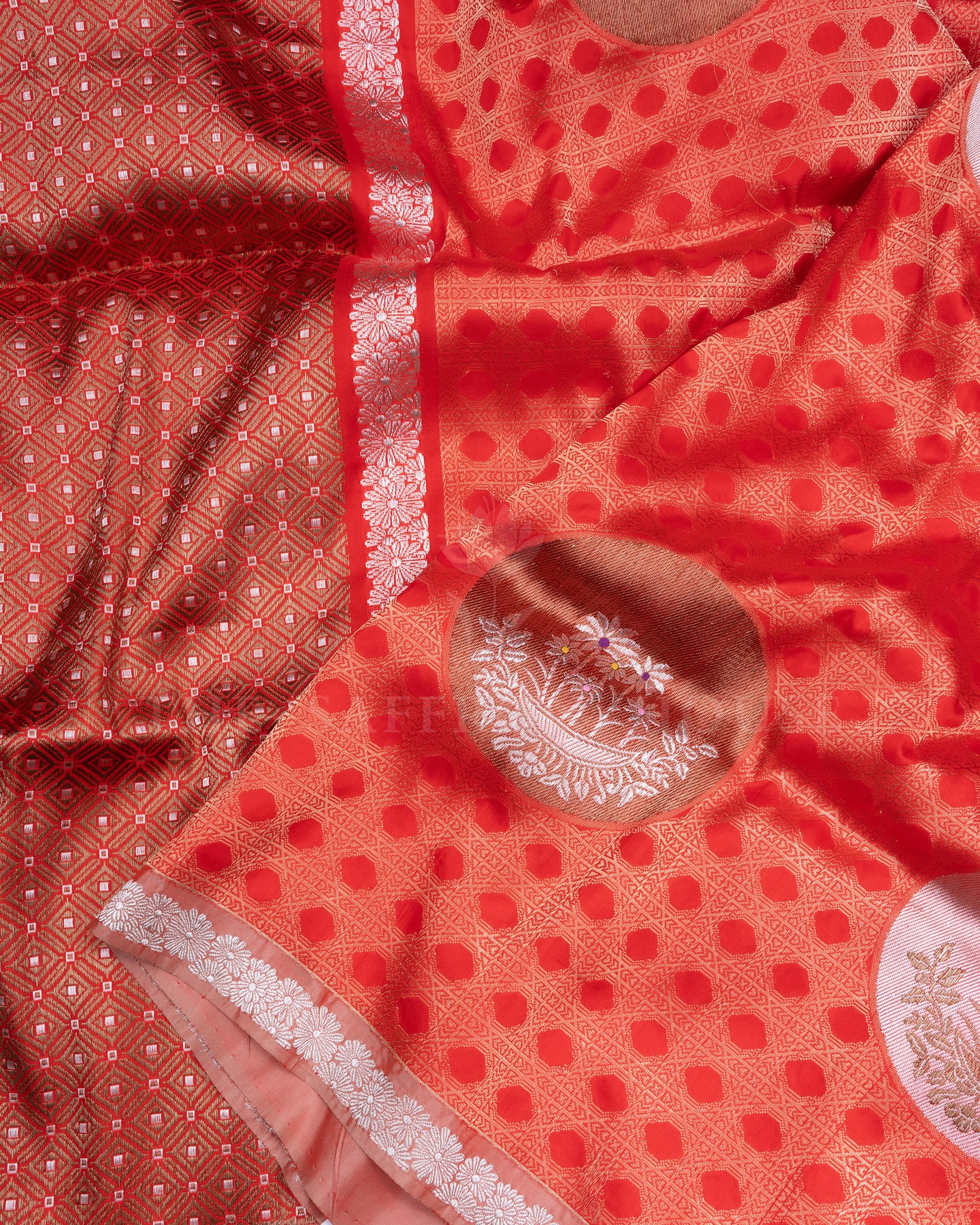 Orange Handwoven Banaras Silk Saree - TSH2506164