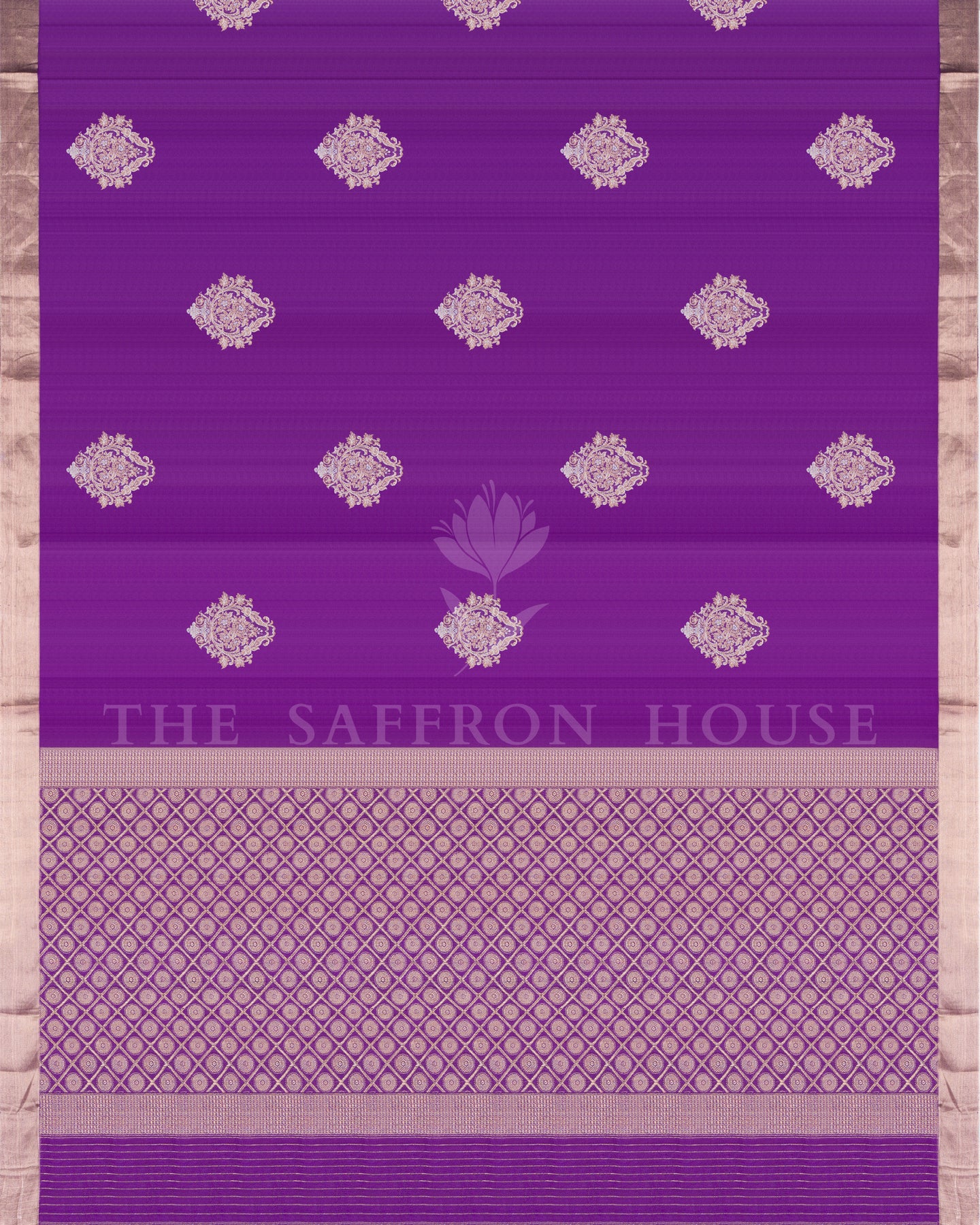 वर्निका - रॉयल पर्पल रंग में शुद्ध हाथ से बनी टसर सिल्क साड़ी - TSH250297