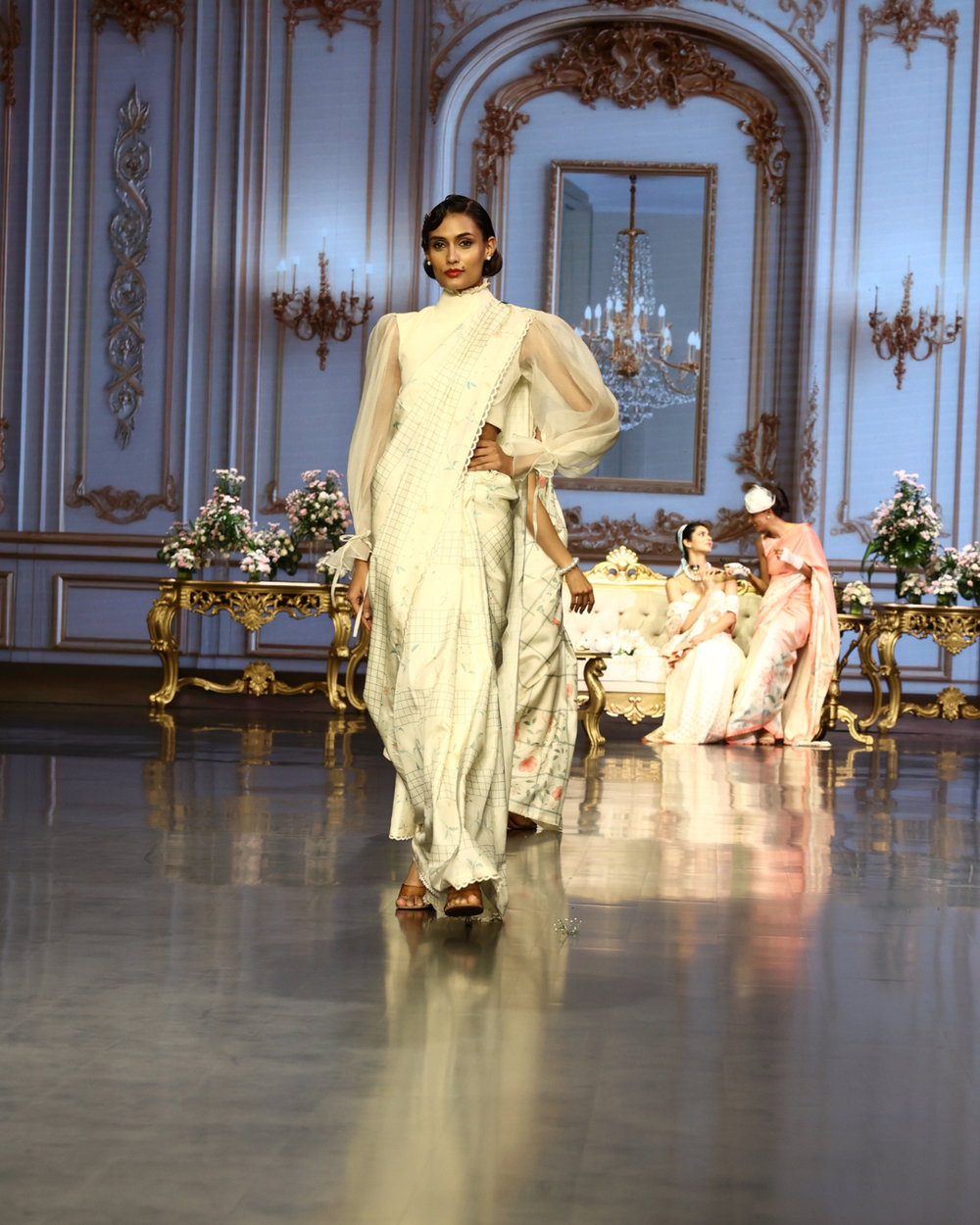 Every saree in this collection is created on order. Please allow up to 25 days for your handcrafted piece to be delivered.