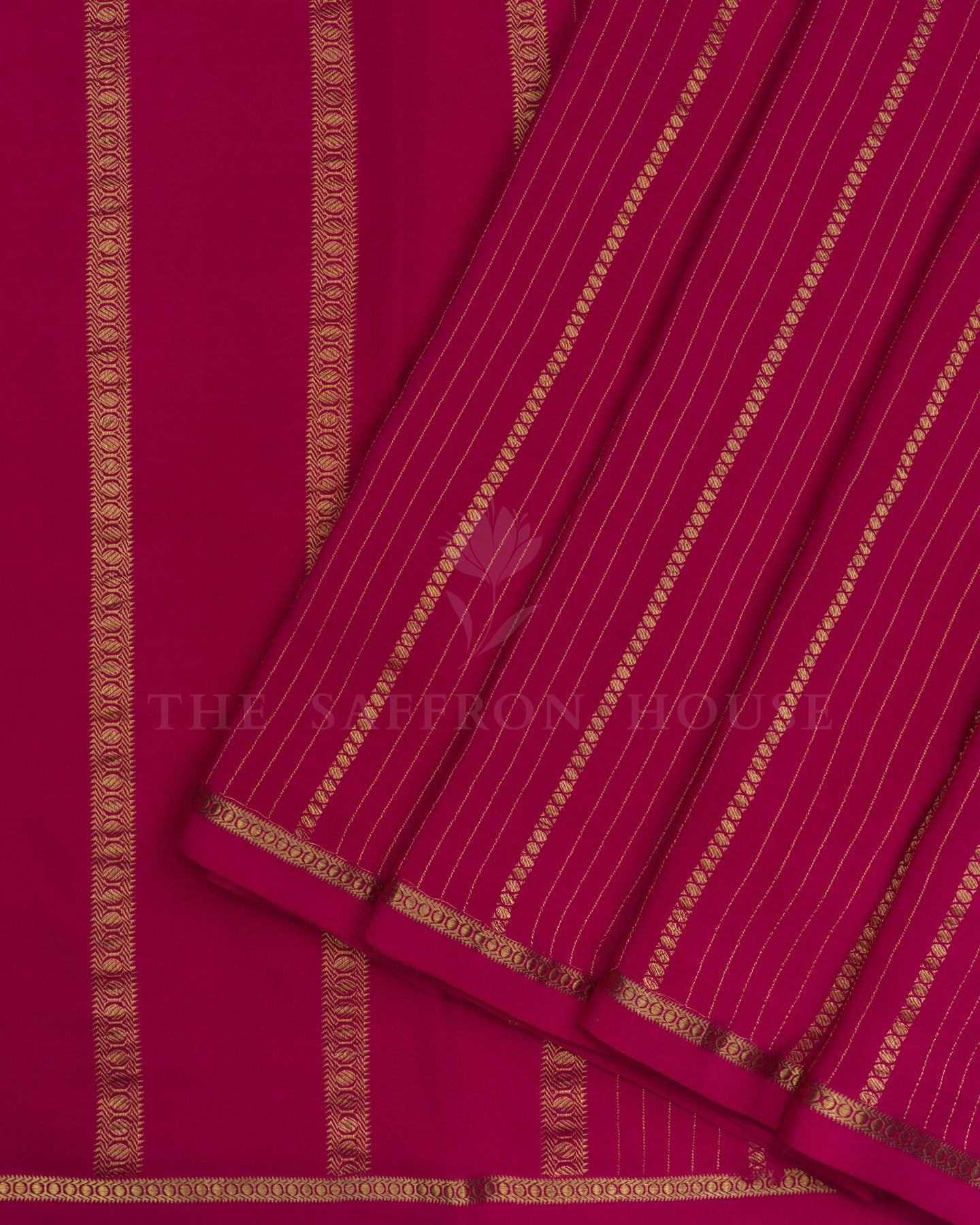 Rani pink pure zari Mysore silk saree with elegant zari stripes and matching border