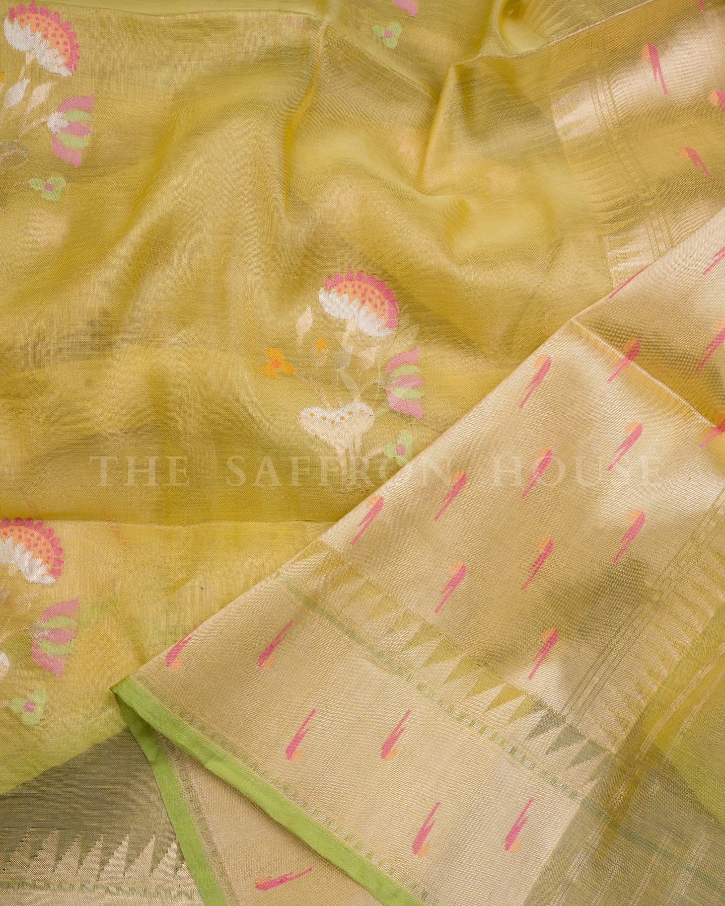 Border: Temple Rekku with Zari & Green Selvedge